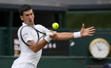 Wimbledon, Jul 5 (AP): Two-time defending champion Novak Djokovic held every service game Monday and reached his 50th Grand Slam quarterfinal by beating No. 17-seeded Cristian Gar n at Wimbledon, 6-2, 6-4, 6-2.