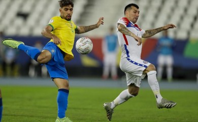 RIO DE JANEIRO, July 3 (AP) — Defending Copa America champions Brazil defended strongly with 10 men to advance to the semifinals with a 1-0 win on Friday against Chile. Substitute Lucas Paquetá sco