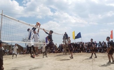 Players in action during a friendly volleyball match organised by the Kiphire Battalion of Assam Rifles under the aegis of HQ IGAR (North) in Longmatre, Kiphire district, \on March 3. The friendly match was org