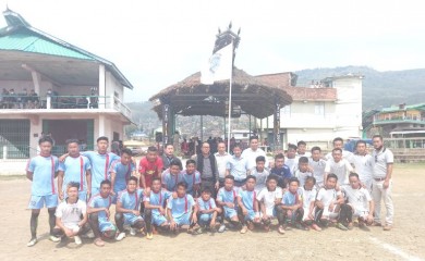 Wokha, April 21 (MExN): The Airfield Colony and clash with XI Brothers, Wokha Village in the final of the ongoing 18th LSU Martyr's Trophy at local ground Wokha on April 22.