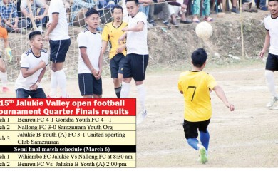 Jalukie, March 6 (MExN): Nallong (White) FC and Jalukie B Youth (A) won their respective semi-final matches to set up a final clash at the 15th Jalukie Valley Open Football Tournament on March 8.