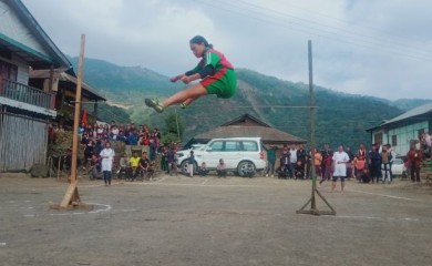 A Chakhesang woman participates in a sporting event in Porba village under Phek district on December 11. Due to COVID-19 pandemic, the calendar of the sports activities has come to a standstill in Nagaland. All