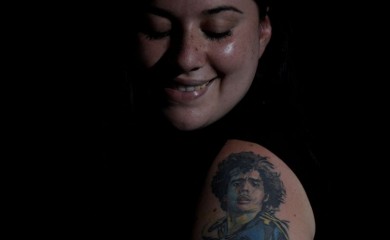 BUENOS AIRES, November 30 (Reuters) - Under his shirt, pizza shop owner Guillermo Rodriguez is a walking shrine to Diego Maradona. His entire back is covered in tattoos depicting the soccer great, whose de