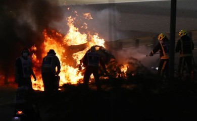MANAMA, November 30 (Reuters) - Lewis Hamilton won the Bahrain Formula One Grand Prix for Mercedes on Sunday after French driver Romain Grosjean had a miraculous escape from a fiery first-lap crash that ripped