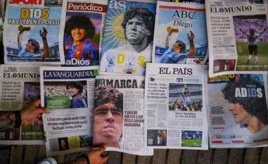 November 26 (Reuters) - Diego Maradona's death dominated the front and back pages of newspapers as the world bid farewell to the 'god of football', with his renowned "Hand of God" quote fe