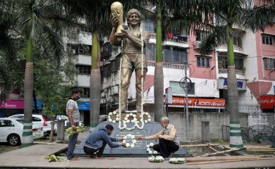 KOLKATA, Novmber 26 (Reuters) - Indian football fans gathered in Kolkata on Thursday to mourn the death of Argentine football legend Diego Maradona, whose mesmerizing performance and feats in the 1986 World Cup