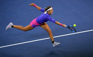 NEW YORK, September 8 (Reuters) - Victoria Azarenka had a huge smile on her face after reaching her first Grand Slam quarter-final in more than four years by beating Czech Karolina Muchova 5-7 6-1 6-4 in the fo