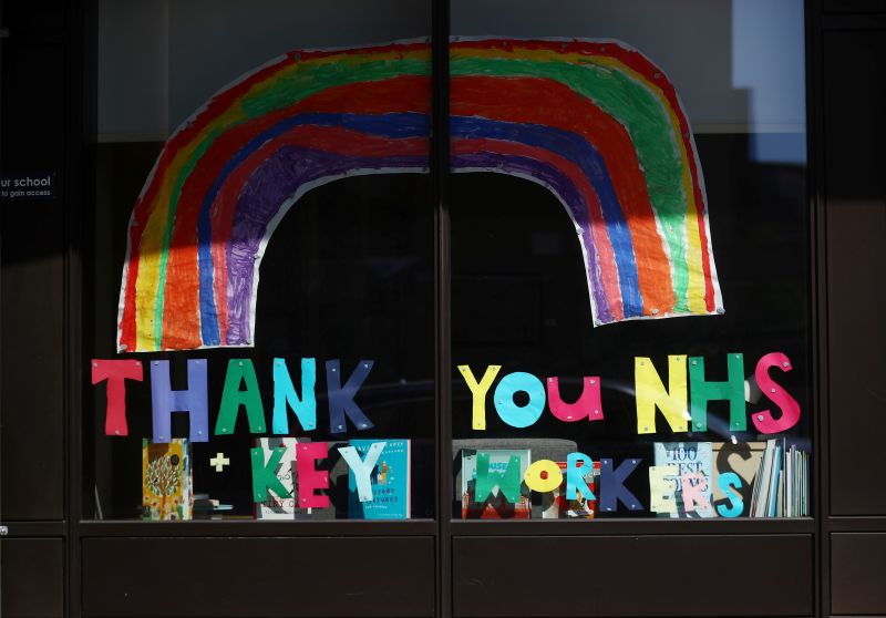 A thank you message to the NHS is seen in a window as the spread of the coronavirus disease (COVID-19) continues, London, Britain, April 14, 2020. REUTERS/Hannah McKay/Files