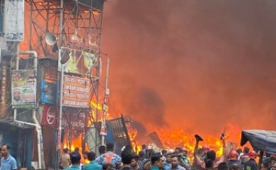 Dhaka, April 5 (IANS): About 700 firefighters continued working on Wednesday to completely douse a massive blaze that erupted at the Bangabazar in Dhaka -- the biggest wholesale market in Bangladesh -- 36 hours