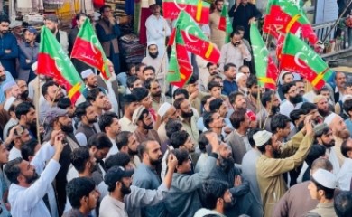 Islamabad, October 21 (IANS): Following the disqualification of former Pakistan Prime Minister Imran Khan from the Toshakhana reference, PTI activists took to the streets across the country to record their prot