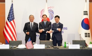 Kuala Lumpur, July 11 (IANS): South Korea, the United States and Japan reaffirmed Friday their "resolute" commitment to the complete denuclearization of North Korea, as they held their first high-level diplomat