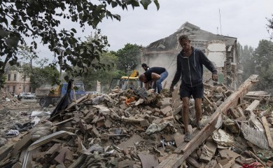 Kyiv, July 15 (AP) Rescue teams with sniffer dogs combed through the debris Friday in a central Ukrainian city looking for people still missing after a Russian missile strike a day earlier killed at least 23 pe