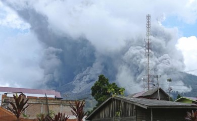 Medan (Indonesia), July 28 (AP): A rumbling volcano on Indonesia's Sumatra island on Wednesday shot billowing columns of ash and hot clouds down its slopes.
