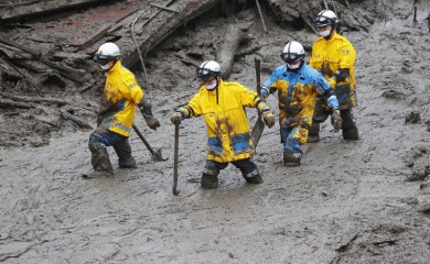 Atami (Japan), July 5 (AP): Rescue workers slogged through mud and debris Monday looking for dozens feared missing after a giant landslide ripped through a Japanese seaside resort town, killing at least three p