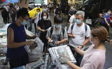 Hong Kong, June 24 (AP): Across Hong Kong, people lined up early Thursday to buy the last print edition of the last remaining pro-democracy newspaper.