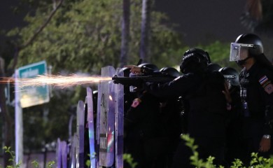 Bangkok, March 21 (AP) Scores of people were injured and arrested in the Thai capital after police used water cannons, tear gas and rubber bullets Saturday night to break up a rally by pro-democracy protesters