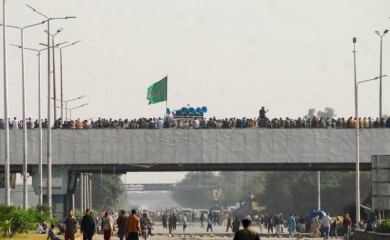 RAWALPINDI, Pakistan, November 16 (Reuters): Thousands of supporters of a hardline Islamist party clashed with police on the main road into Pakistan's capital city on Monday following protests ove