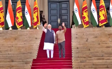 Colombo, April 5 (IANS) Prime Minister Narendra Modi received a grand ceremonial welcome at the Independence Square in Colombo on Saturday, as Sri Lankan President Anura Kumara Dissanayake hosted him during his