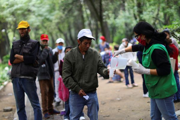 A man receives free food at public park, as the outbreak of the coronavirus disease (COVID-19) continues in Mexico City, Mexico on May 7, 2020. (REUTERS Photo)