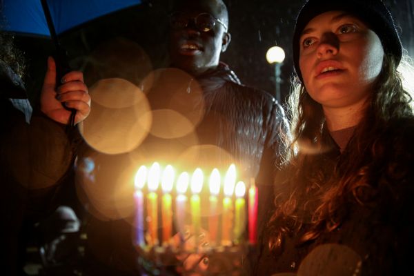 A woman holds candles while standing in solidarity with the victims after an assailant stabbed five people attending a party at an Hasidic rabbi's home in Monsey, N.Y., on December 28, 2019, while they were cel