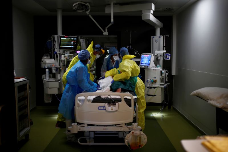 A patient suffering from coronavirus disease (COVID-19) is treated in the Intensive Care Unit (ICU) at the Centre Cardiologique du Nord private hospital in Saint-Denis near Paris as the spread of the coronaviru