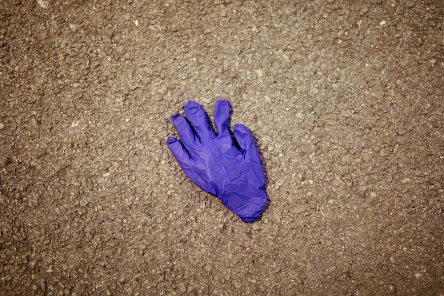 A discarded glove is seen on a street amid the spread of the coronavirus disease (COVID-19), in Barcelona, Spain on April 15, 2020. (REUTERS Photo)