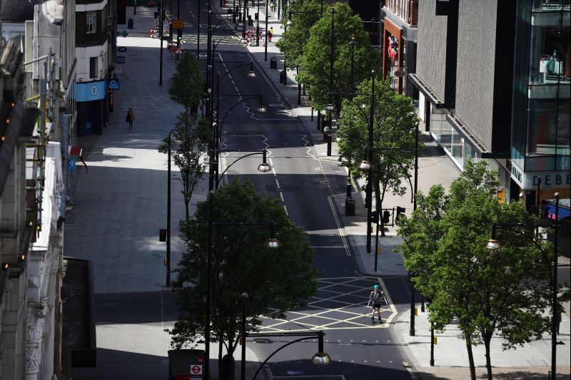 General view of an almost empty Oxford Street, as the spread of the coronavirus disease (COVID-19) continues, London, Britain, April 13, 2020. REUTERS/Hannah McKay