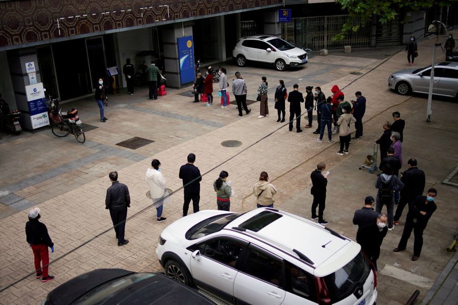 People line up outside a China Construction Bank branch after the lockdown against the coronavirus disease (COVID-19) was lifted in Wuhan, Hubei province, China on April 14. (REUTERS Photo)