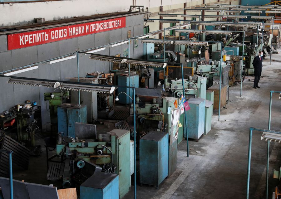 An interior view shows the disused Burevisnyk state-run military plant, which is considered by local authorities as the domestic producer of ventilators amid the outbreak of coronavirus disease (COVID-19), in K