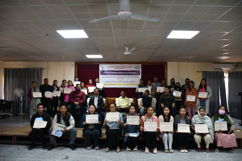 CAU officials along with the pig farmers during the training programme in Pig Husbandry held at the College of Veterinary Science and Animal Husbandry, Jalukie on January 31.