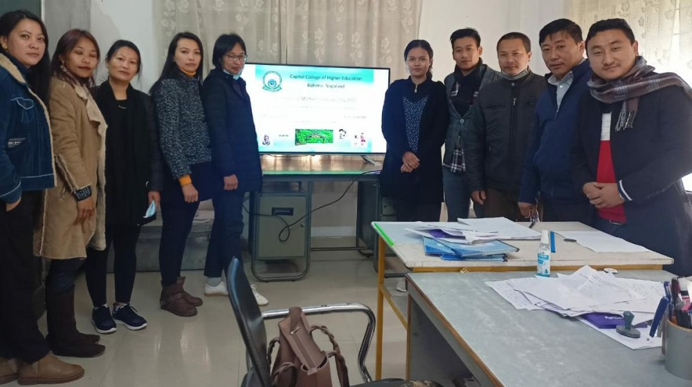 Kohima, February 22 (MExN): Students of Capital College of Higher Education, Kohima (CCHE) on February 21 took part in a unique activity as a part of the observance of International Mother Language Day.