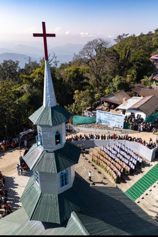 Aerial view of the Phiro Baptist Church during the centenary celebration in Phiro village, Wokha on Janauary 9.