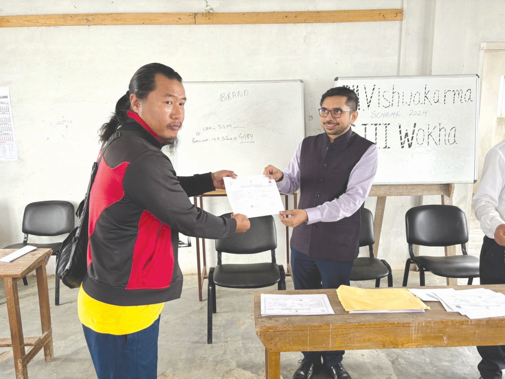 Trainee accepting certificate under PM Vishwakarma Scheme at ITI Wokha on August 12.