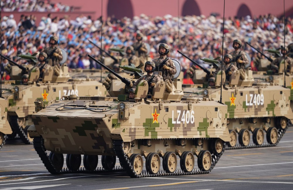 A formation of airborne fighting vehicles takes part in a military parade during the celebrations marking the 70th anniversary of the founding of the People\'s Republic of China (PRC), in Beijing, capital of China, Oct. 1, 2019. (Xinhua/Zhou Mi/IANS)