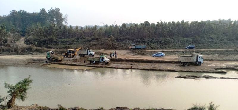 Trucks being loaded with soil and pebbles at Chathe River. (Morung file Photo)