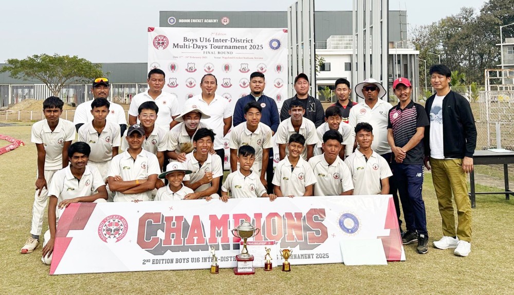 DIMAPUR, FEBRUARY 24 (MExN): Chümoukedima District emerged victorious in the 2nd Edition Boys U-16 Multi-Days Inter-District Tournament 2025, which concluded on February 23. The tournament, hosted by the Nagaland Cricket Association (NCA), began on January 29 and featured competitive fixtures until February 4, with the final rounds held from February 17 to 23.
