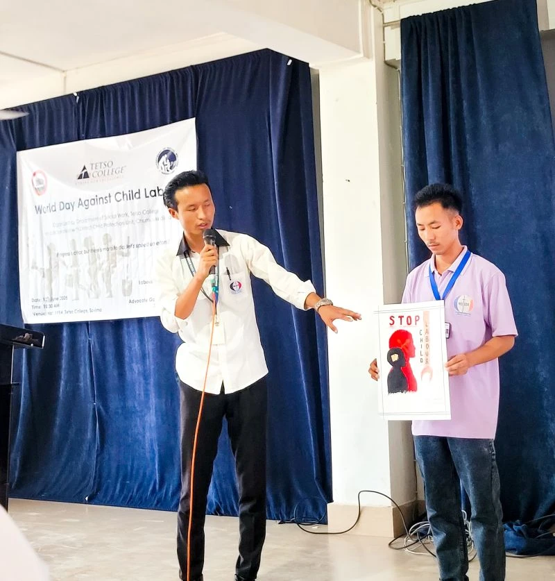 Further, a poster presentation was organised by Department of Social Work, Tetso College, and North East Institute of Social Sciences and Research (NEISSR). The students showcased a series of posters centered on the theme of child labour, aiming to educate the public and spark critical conversations.