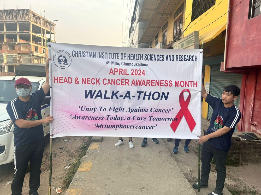 The month of April marks the head and neck cancer awareness month and in an effort to raise awareness, the staff and students of Christian Institute of Health Sciences and Research (CIHSR), Chümoukedima conducted a walkathon on April 11 at 6:30 am from Chekiye gate, 3rd Mile, Chümoukedima to the hospital main gate.