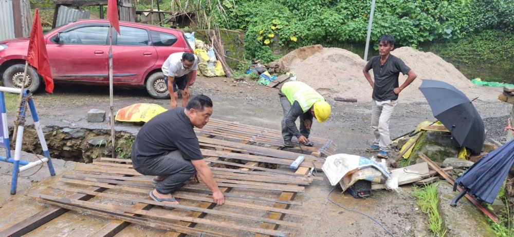 WOKHA, JULY 20 (MExN): A group of local residents in Wokha have come together to construct a temporary passage over a caved-in section of road leading to the District Hospital, which had remained in disrepair for over five months.