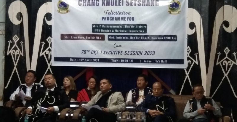 Tuensang, April 28 (MExN): Chang Khulei Setshang (CKS) held its 78th executive session cum felicitation programme for Chang elected members- Beshangmongba Chang Minister PWD Housing and Mechanical Engineering, Lima Onen MLA and Imtichuba MLA and Chairman DBDP Tuensang, at CKS Hall Tuensang on April 28.