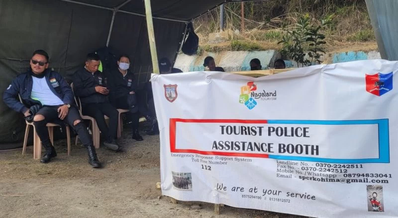 Nagaland Police has set up Tourist Police Assistance Booth in Kisama and Kohima to facilitate and assist tourists during 24th Hornbill Festival 2023. Emergency Response Support System Toll Free Number- 112 has also been provided. (Morung Photo)