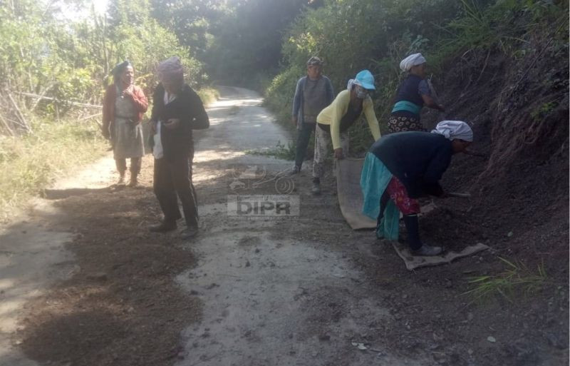 Nzaulun volunteers repairing the road from Tening to Nzau Namsan on November 3. (DIPR Photo)