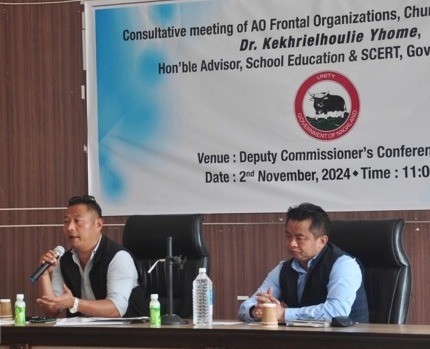 A consultative meeting was held at the Deputy Commissioner’s Conference Hall in Mokokchung, where representatives from Ao Frontal Organizations, local churches, and educational leaders gathered to discuss critical issues in Nagaland’s education system. Dr Kekhrielhoulie Yhome, Advisor for School Education and SCERT, led the discussion, with Deputy Commissioner Thsuvisie Phoji presiding over the programme.