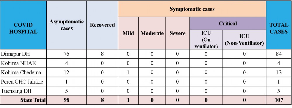 Out of 107 patients, 103 are in 18-44 age group, while the rest 17 years or below, as per the Nagaland COVID-19 Dashboard. There are 75 males and 32 females among the 107 cases.