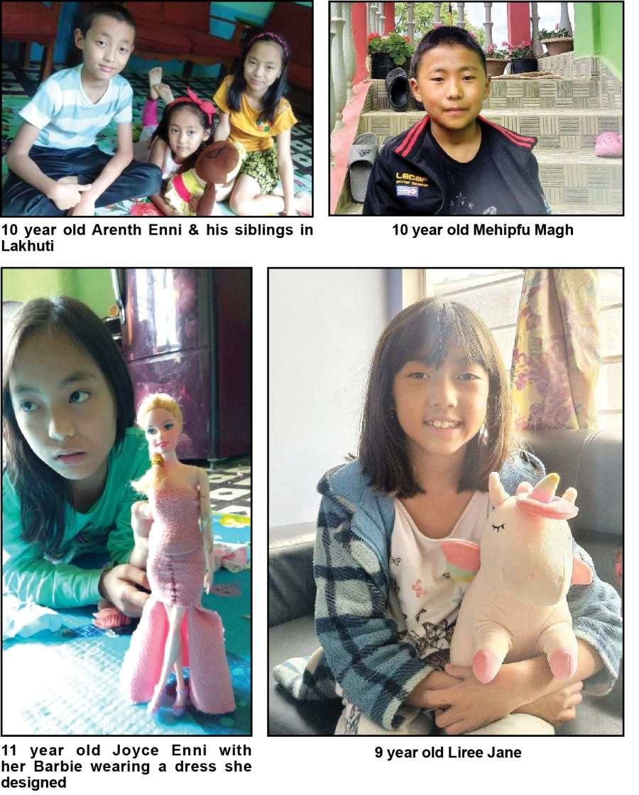 His eldest sister— Joyce Enni is 11 years old and in a conversation with The Morung Express, she says, “I miss school. I miss my friends and teachers. I miss studying.” They are getting daily assignments from school but that’s obviously not the same thing as going to school. “I am just staying at home, doing assignments but when I finish school work, I am also stitching Barbie dresses,” she elatedly states.