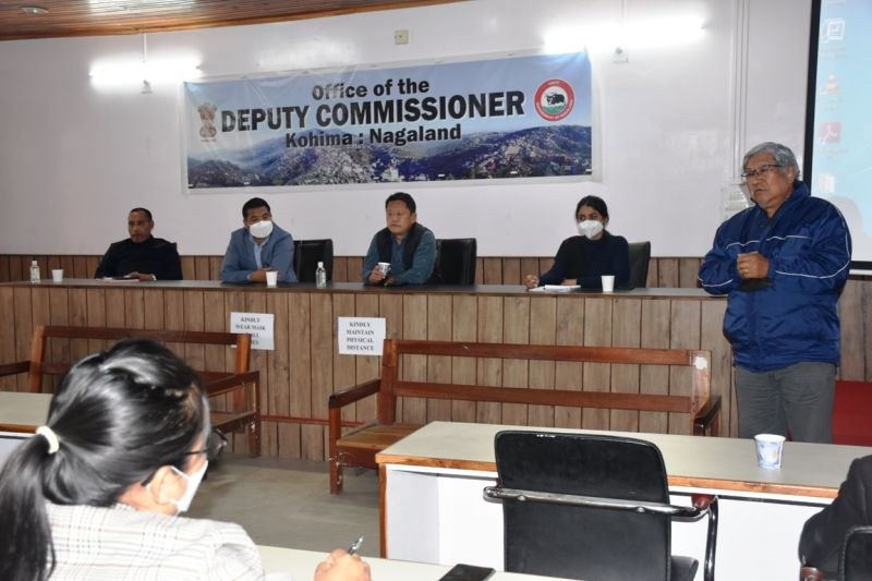 CMO Kohima, Dr Vezokholu Theyo gave a presentation on the status of Kohima district Covid-19 where she informed that "Har Ghar Dastak campaign" (knocking on every door) was initiated on 8th November 2021 which will continue till November 30. She said that the campaign was initiated to accelerate the coverage of COVID vaccination and to identifying the beneficiaries who have not yet taken the 1st dose and beneficiaries overdue for 2nd dose and further sought supports from all the stakeholders for the campaign.