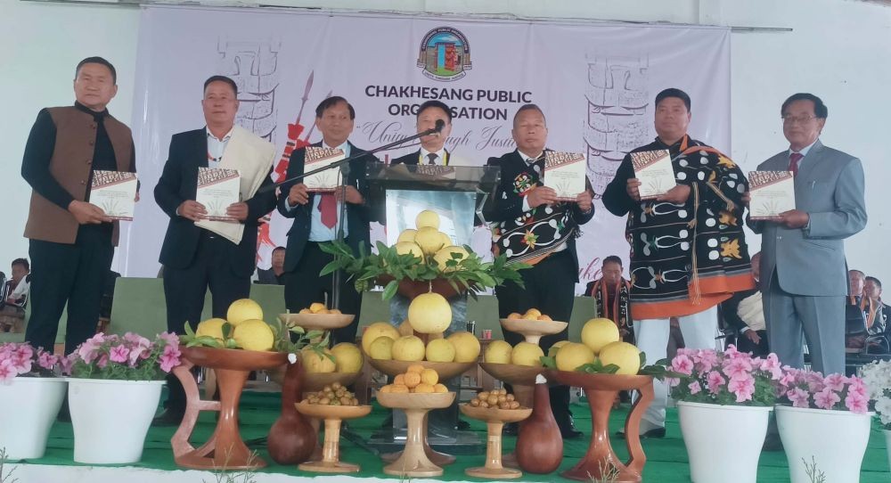 Civil Administration Works Division (CAWD) & Taxes Advisor Kudecho Khamo released a book on Regulations on the usage of Chakhesang Attires and Ornaments (Part-1) during the 44th General Session of the Chakhesang Public Organization (CPO) at Phek town on February 21.