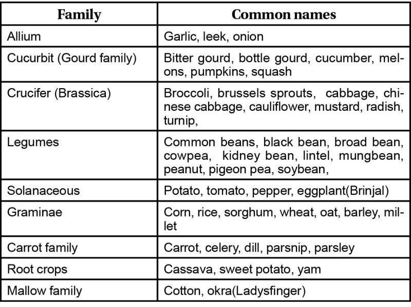 • Know the family where your crops belong, to make sure that you plant on the next cropping a crop that belongs to a different family than the previous one