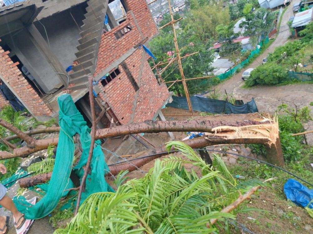 A tin roof was uprooted following windstorm at BOC area in T Khel Market, Kohima on May 28.Power department workers seen engaged in repairing a power line in Kohima in the aftermath of the storm on May 28. (Morung photo)A pine tree uprooted at the State Guest House, Old Minister Hill, Kohima causing damage to the boundary wall and neighbouring house rooftop on May 28.