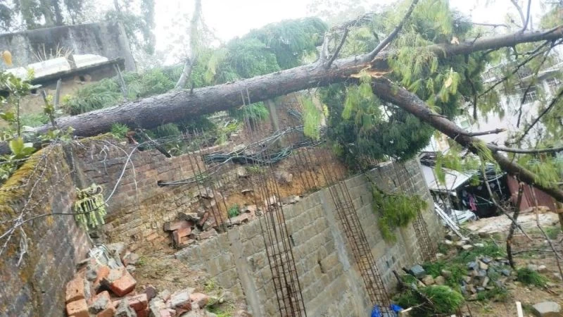 Tree collapsed on building and car near Govt High School, Lower Forest Colony in Kohima on May 28.